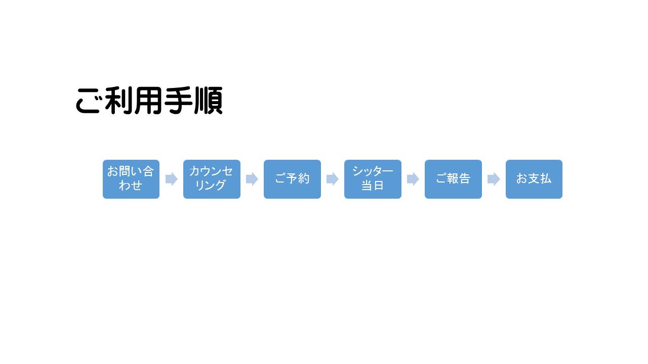 ご予約の日時や内容ご希望に応じてシッターが各サービスに従事致します。(担当者は事前にご連絡いたします。)